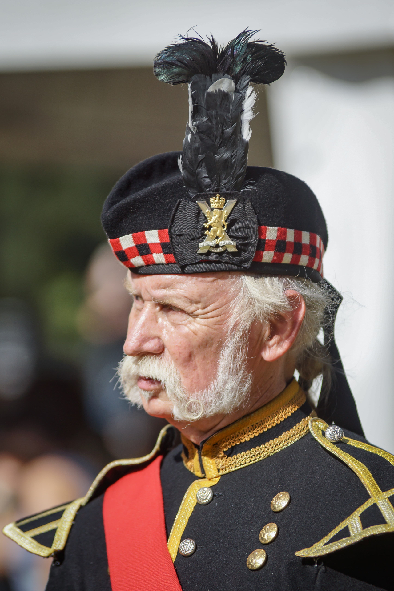 Die Dresden & District Pipes and Drums treten in der traditionellen schottischen Pipe-Band-Uniform mit Kilt auf. Der von uns getragene Tartan — das charakteristische Karomuster der Kilts — ist „Gordon Modern“.